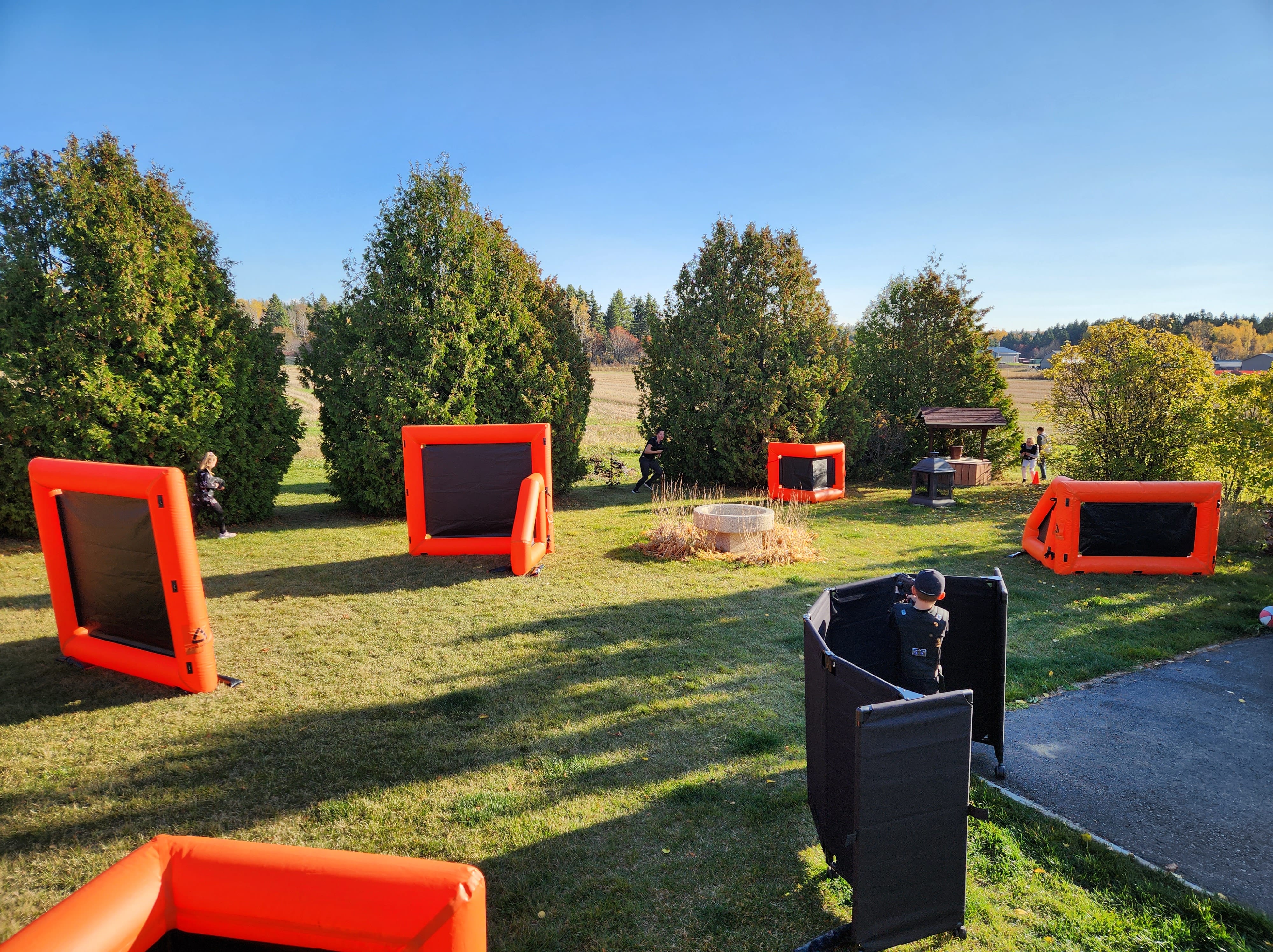 Le second forfait, plus adapté aux familles de tous âges (enfants, adolescents et adultes), est une option deluxe pour ceux qui souhaitent vivre une expérience compétitive en famille. Les murs gonflables de ce forfait varient entre 4' et 6' de hauteur, parfaits pour les participants de plus grande taille. Ce forfait inclut environ 1h30 d'installation, 2h de jeu et 1h de désinstallation, offrant ainsi une expérience complète et divertissante pour tous.