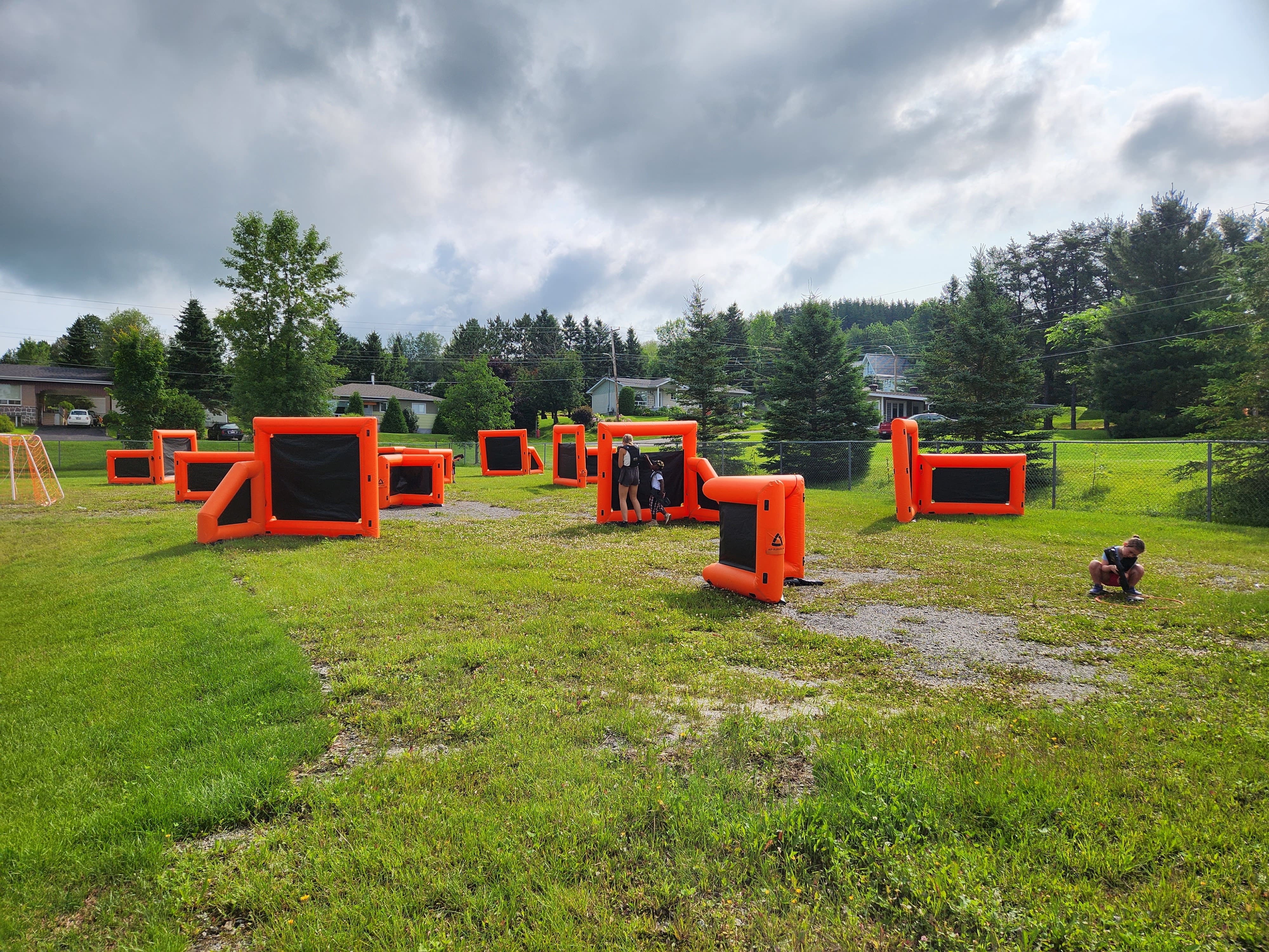 Nous arrivons sur place entre 1h30 avant le début de l'activité pour installer notre parcours de murs gonflables.