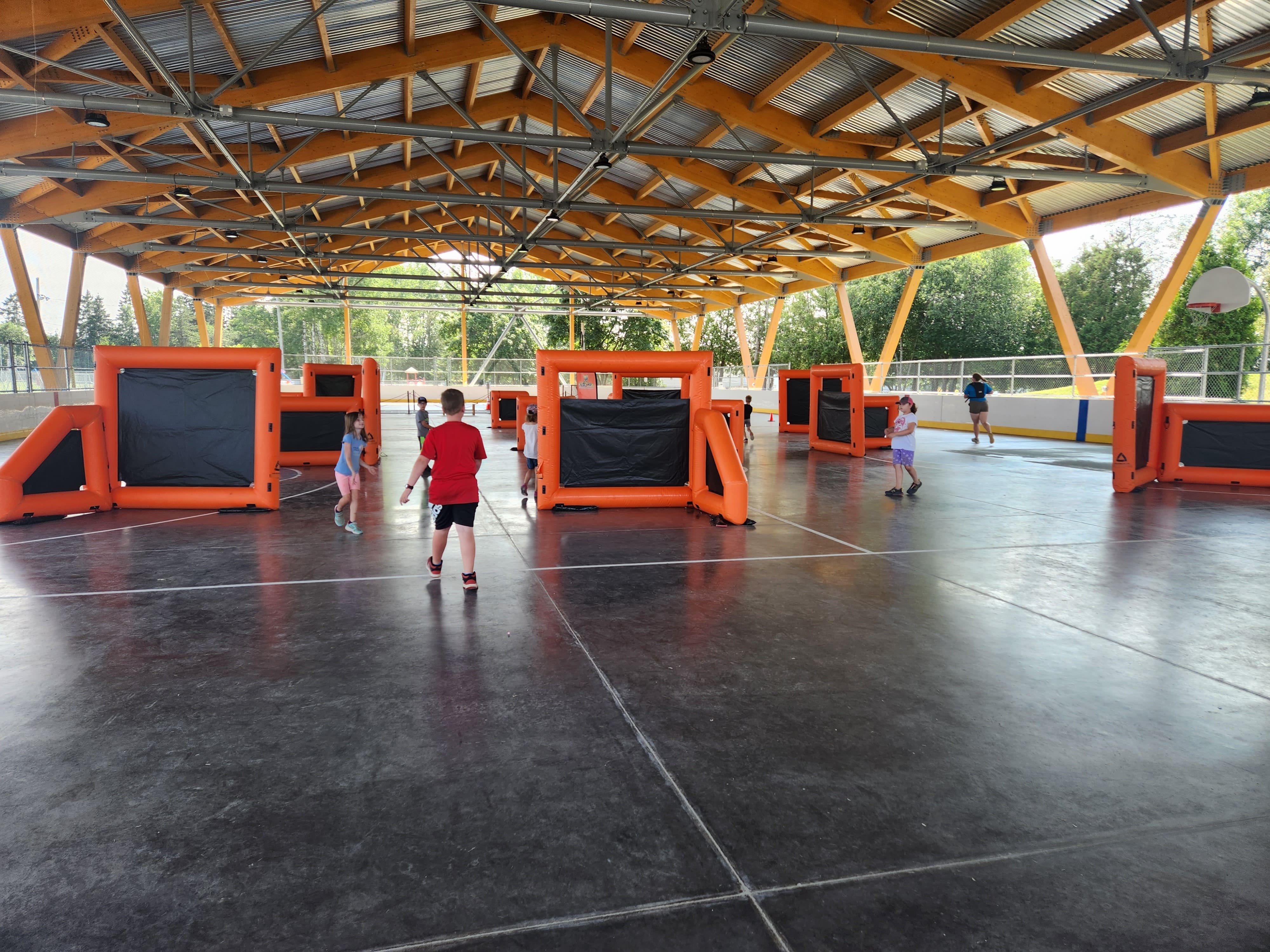 Choisissez un terrain extérieur, un gymnase ou même une grande salle pour accueillir l’activité. Notre équipement est entièrement autonome en énergie, vous n’aurez besoin d’aucune prise électrique pour offrir cette expérience unique !
